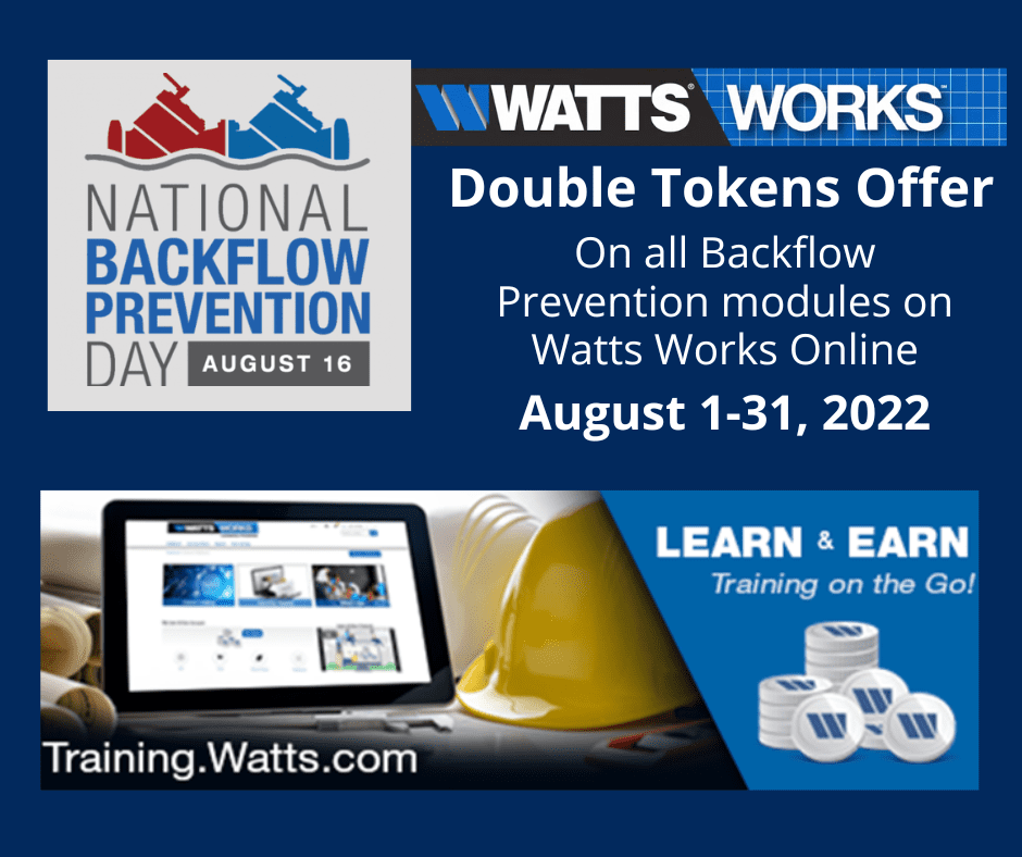 National Backflow Prevention Day is August 16, and Watts has Double-Tokens offered on their Backflow Prevention Modules through August 31, 2022!
