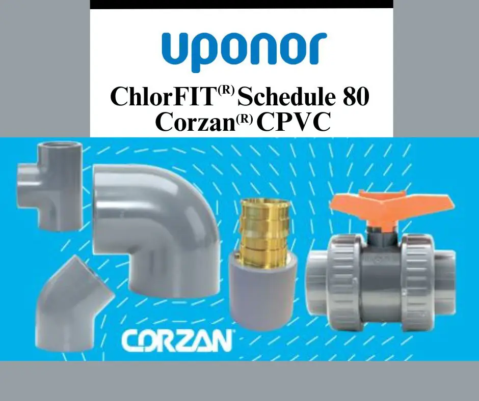 Engineered for commercial domestic water, Uponor ChlorFIT ® Schedule 80 Corzan ® CPVC is immune to chlorine degradation and resists corrosion for high-performing piping in domestic water and mechanical hydronics applications. Find out more here.