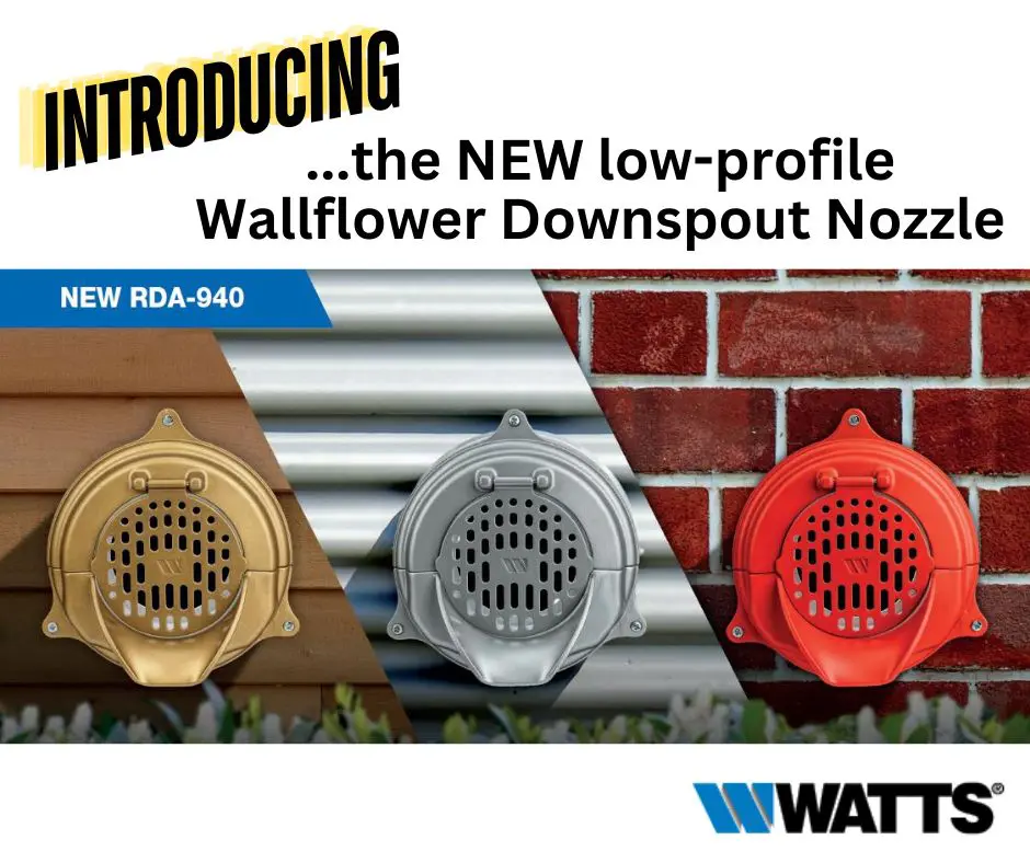 Introducing the new cast aluminum Wallflower™ Downspout Nozzle with integrated wall flange and vandal proof screws for universal gasketed connection for cast iron, PVC, and IPS pipe. Click here for more info!